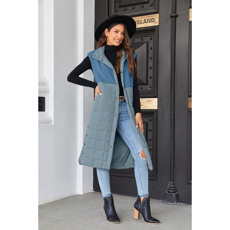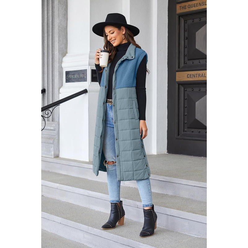 - Features: womens long down vest, button closure, sherpa fleece patchwork, sleeveless puffer long jacket coats for women, pockets, solid color, cute and fashion.