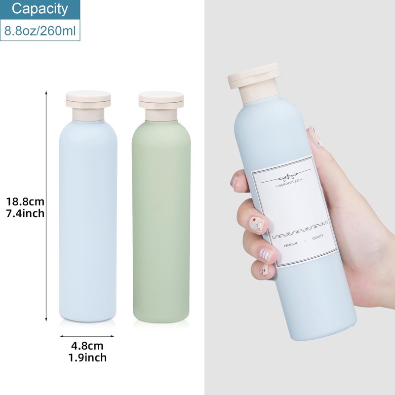 UMETASS Travel Bottles for Filling, Leak-Proof Travel Time Set, Travel Large Shampoo Container with Flip-Top Lid, Empty Travel Bottles (Green + Blue, 260 ml)