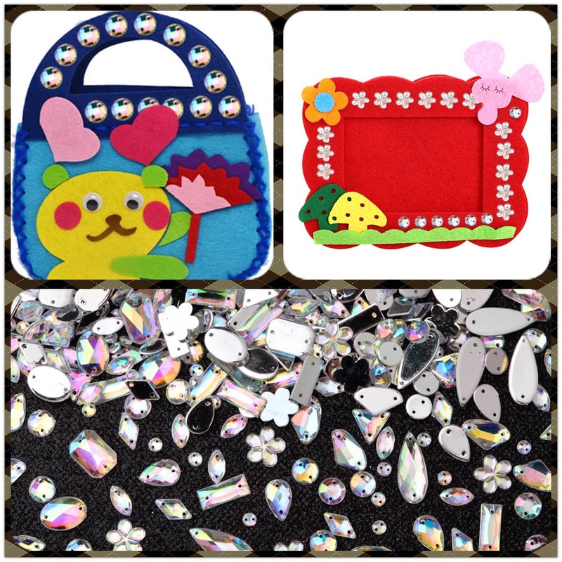 - Fácil de aplicar: hay 2 agujeros en la parte posterior de los diamantes de imitación para que puedas coser los diamantes de imitación a prendas, zapatos, bolsos, accesorios fácilmente, o puedes fijarlos directamente con pegamento, accesorios brillantes y delicados para tus proyectos de costura y manualidades. La piedra cosida es más estable que la piedra pegada en la ropa.