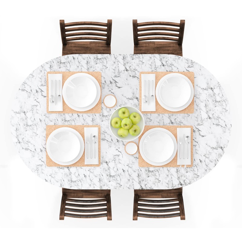 UMINEUX Vinyl Oval Tablecloth with Elastic Edge and Flannel Backed Waterproof Wipe Clean Oval Tablecloth Fits Tables up to 42" x 68" (White Marble)