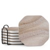 UMIRRO Stone Coasters for Drinks Absorbent for Wooden Coffee Table, Ceramic Stoneware Cup Coasters with Holder for Cold Beer or Hot Tea, Condensation Absorbing, Sandstone Style, Thirsty-Clay, 6 Pack