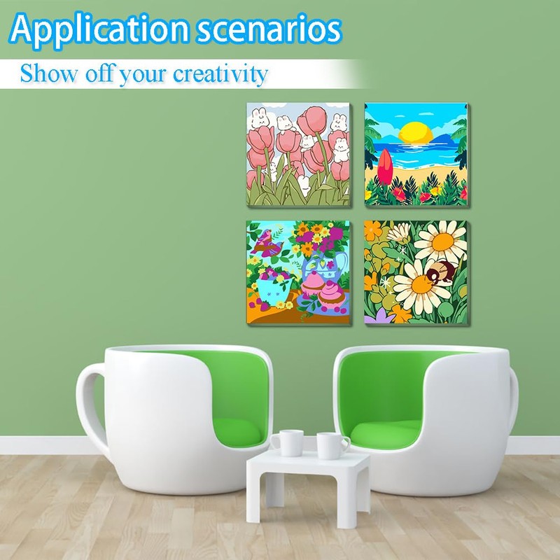 - 【PAINT BY NUBERS】8 x 8 inch Canvas size, simple and cute pattern, clearly pre-printed textured, no painting skills required. Just need to follow the numbers on the canvas and then they can create a great painting by themselves.