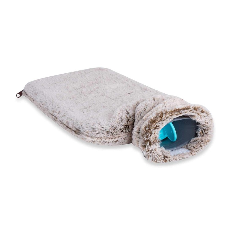 • Contents, size and cover: 2 litres, which should be filled up to around 2/3 full. The cover is made from super-soft faux fur. Quite simply an absolute eye-catcher. Wonderfully cosy. Length: approx. 32.5 cm (body 26.5 cm + bottle neck 7 cm), width approx. 20 cm). Thanks to the zip you can quickly remove the cover and wash it at 30 degrees.