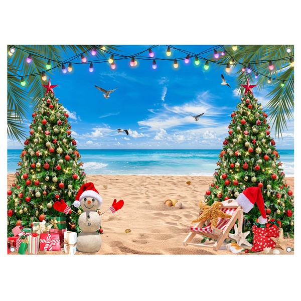 UMURILXY 7x5FT Summer July Christmas Backdrop, Hawaiian Beach Xmas Tree Polyester Photography Background for Parties, Tropical Photo Booth Prop Decorations