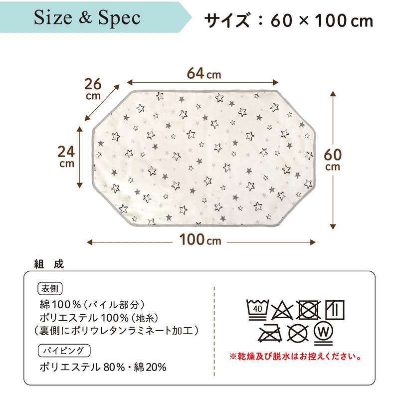 un doudou 3170-Q Waterproof Cotton Cover, 23.6 x 39.4 inches (60 x 100 cm), Monochrome Star, Organic Cotton, 100% Cotton, Pile Fabric, Water Absorbent, Waterproof Backing, Elastic Corners