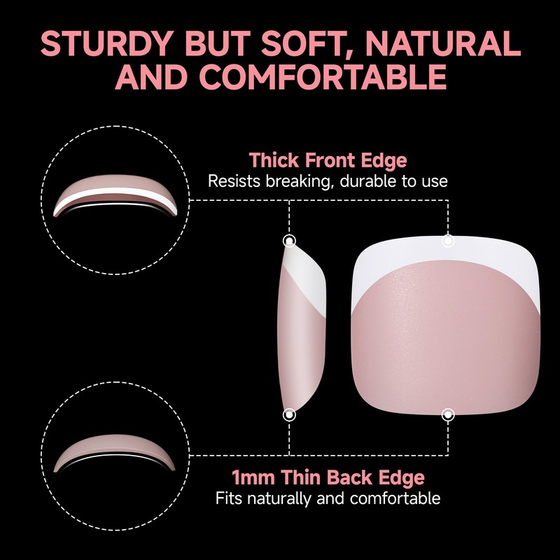 - 💗Trendy French Design: Featuring a stylish French tip with trendy colors and a flawless square shape, these press on toenails let you shine in any season or setting. The matte surface makes it easy to draw patterns, add rhinestones, or apply nail stickers—saving you time and effort on creating a base for French nail art