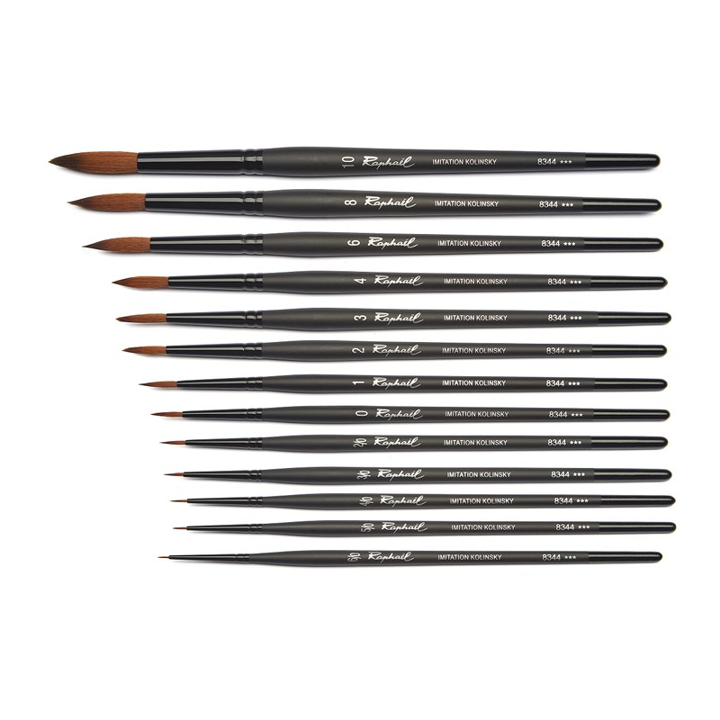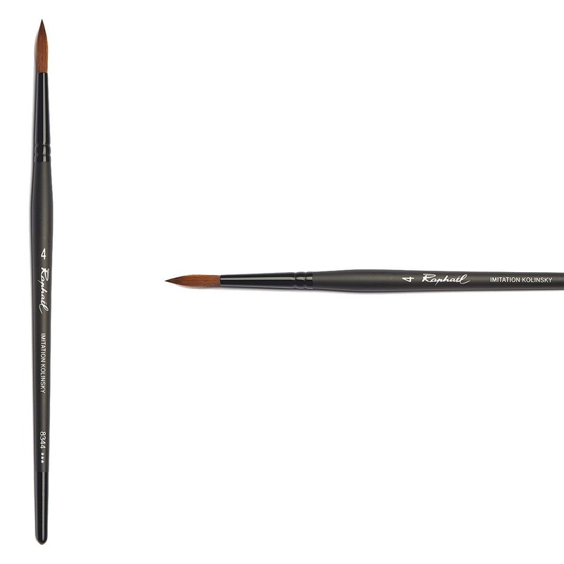 This innovative synthetic Kolinsky Round 4 brush, is based on Raphael's best-selling 840x natural Kolinsky series. Each brush displays all the qualities of natural Kolinsky hair, while being longer lasting and completely vegan. Idea for watercolor, each brush features exceptional attributes at an affordable price including a fine point, excellent spring and water retention. Handmade in Mauritius.