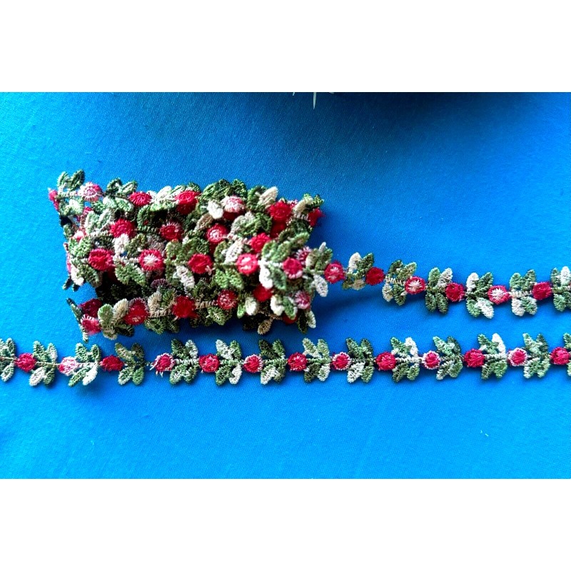 Unbranded 1/2 inch wide floral lacew trim ribbon shade of red/green price per yard