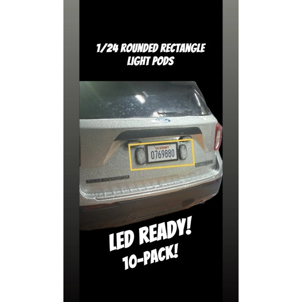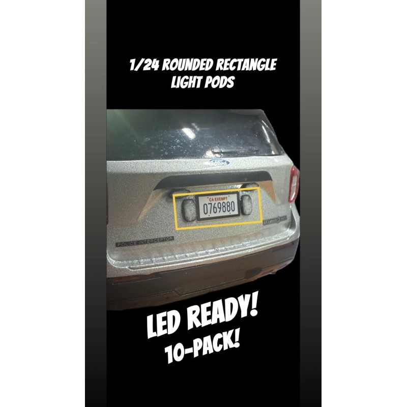 This listing is for a 10-pack of “rounded rectangle” light pods. These are led ready as they have a completely clear lens (SMD 0603 or smaller). These pods are large enough to accommodate multiple LEDs, depending on the size used - great for dual or tri colored lights! LEDs are not included. These add incredible detail and replicate the small pods used on real police cars! Simply cut apart from the tree/sheet, apply a small amount of glue, and install wherever you’d like! Tons of other scale accessories available in my other listings!
