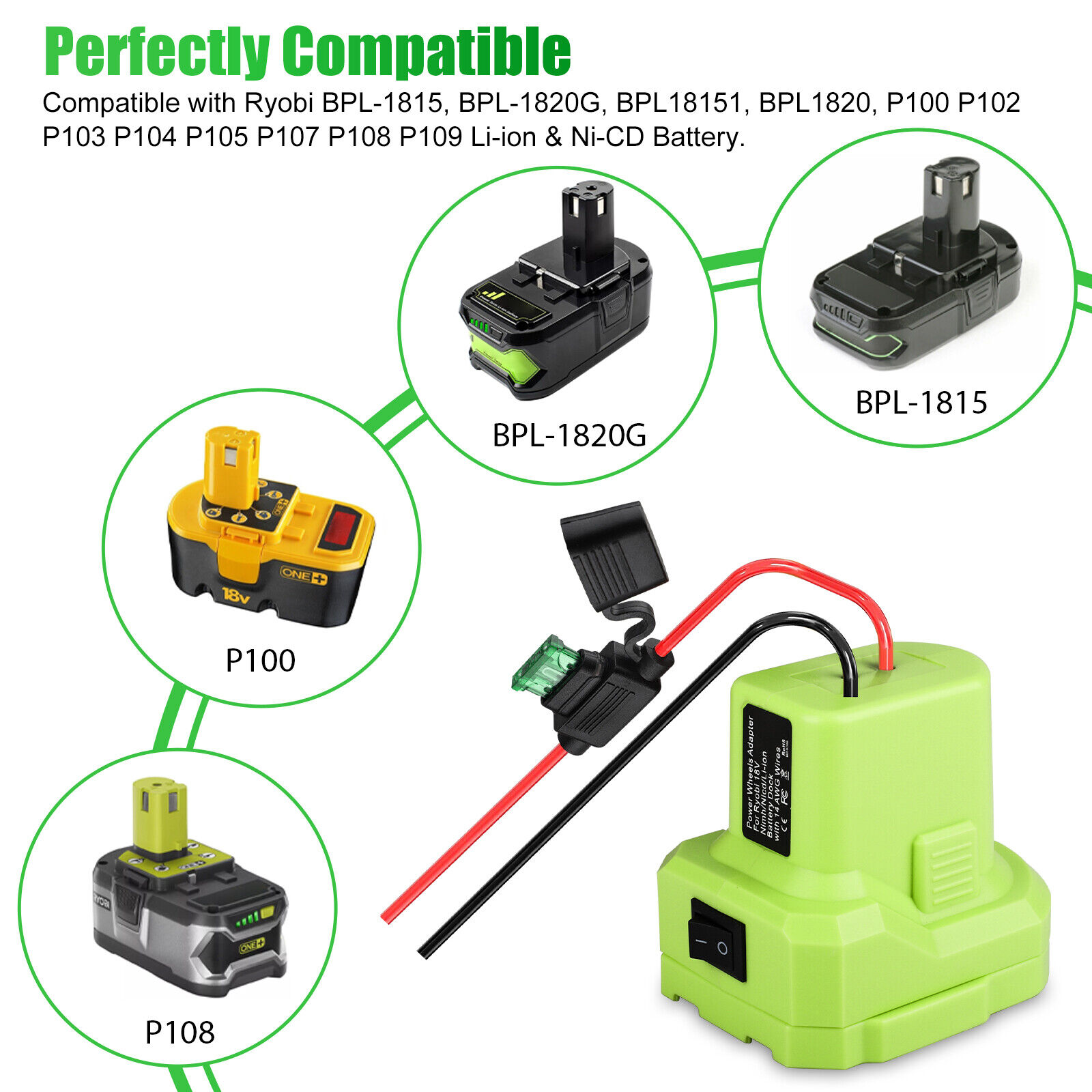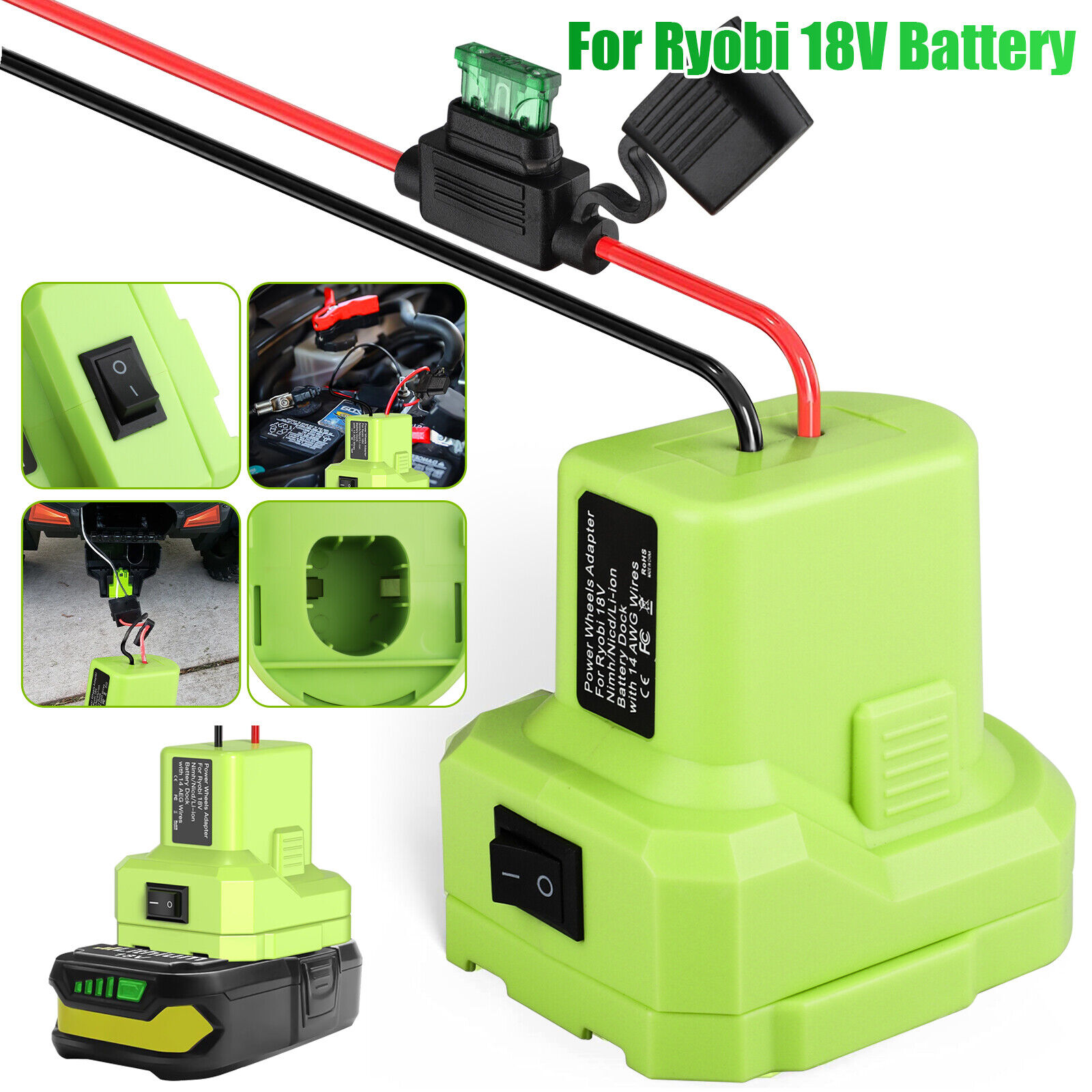 Unbranded 1 Pcs Battery Adapter Connector For Ryobi 18V 14 Gauge With Fuse & Terminal B