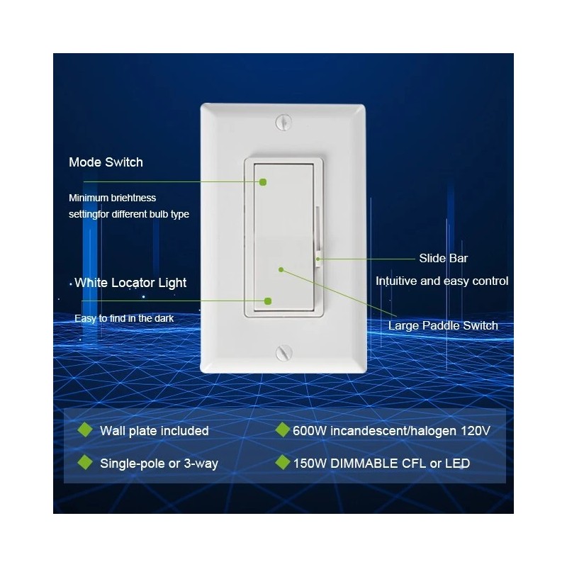 control of a single fixture from 2 wall locations. Made with impact-resistant