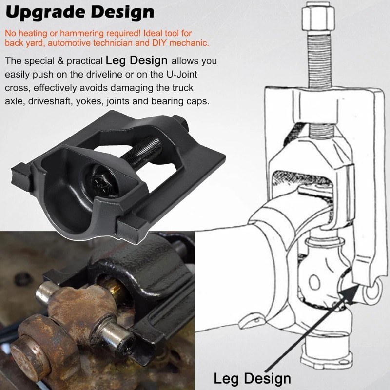 Specially designed to offer the most effective mechanical advantage for helping you easily & quickly remove the old/rust/frozen/stubborn u joints from the driveshaft, reduces risk of damage to the driveshaft, yokes, joints and bearing caps from damage, saving your time, energy and money.