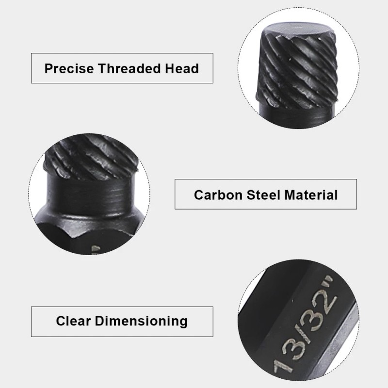 [Left Handed Helical Design] Our sCcrew extractor adopts powerful multi-tooth and a left-handed helical design for extra holding power and faster threading speeds. Helical grooves insert into itself to increase grip and reduce drag.