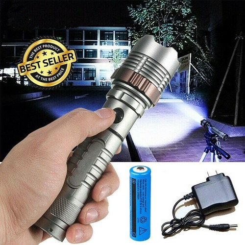 Unbranded 1200000LM Adjustable Focus LED Flashlight 5 Modes Police Torch Lamp+Batt+Char