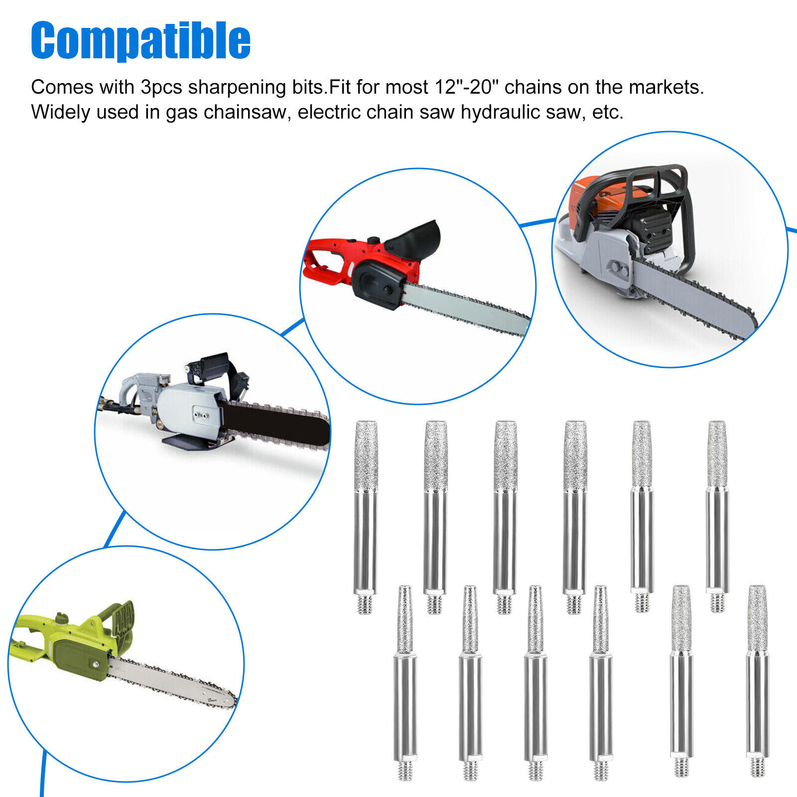 12pcs Chainsaw Sharpener Bits Set Available in 3 different sizes for Chainsaws (5/32"/4.0mm), Small Chainsaws (3/16"/4.8mm), and Large Chainsaws (7/32"/5.5mm), which can meet your daily needs.