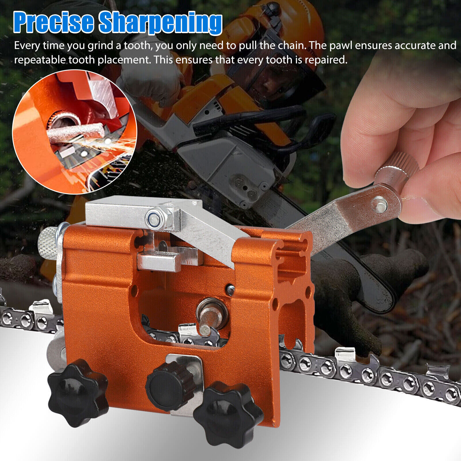 This carbide burr for hand crank chain saw sharpener is only compatible with chainsaw chain sharpening jig. It can be used for 12-20" chain saws.
