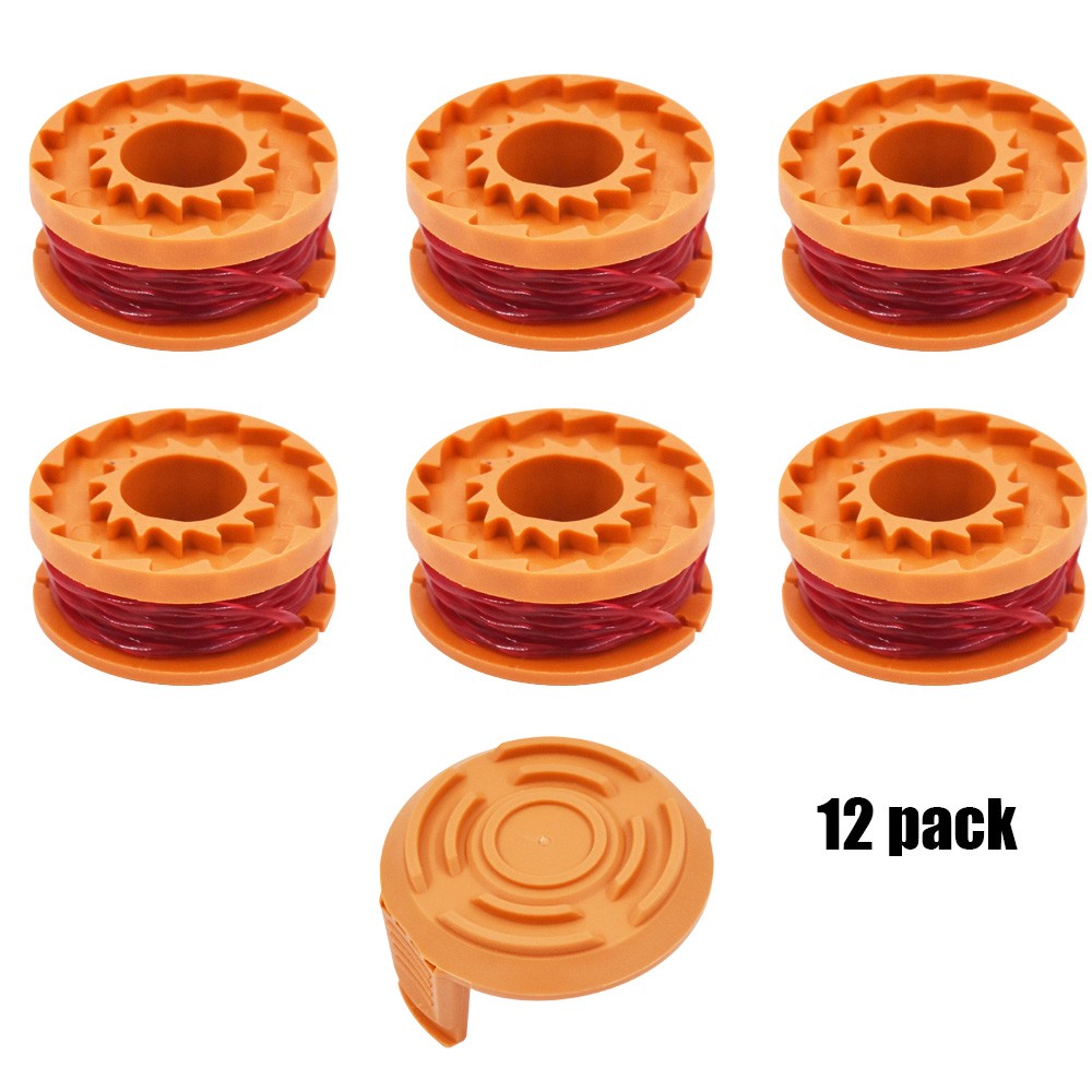 12Pcs Replacement Spool Line And 2 Pcs Spool Cap Cover For WORX WA0010 New