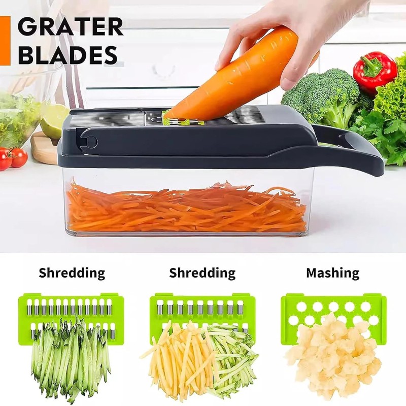 đ„ăSUPER HIGH QUALITYăđ„Vegetable Chopper The latest chopper and slicer or crushed multifunctional chopper and slicer! This mandolin slicer is a practical kitchen tool, and the vegetable chopper can shorten your preparation time to just a few minutes. The vegetable shredder is made of first-class materials, such as stainless steel blades and food-grade materials. A vegetable chopper can undoubtedly improve your health.