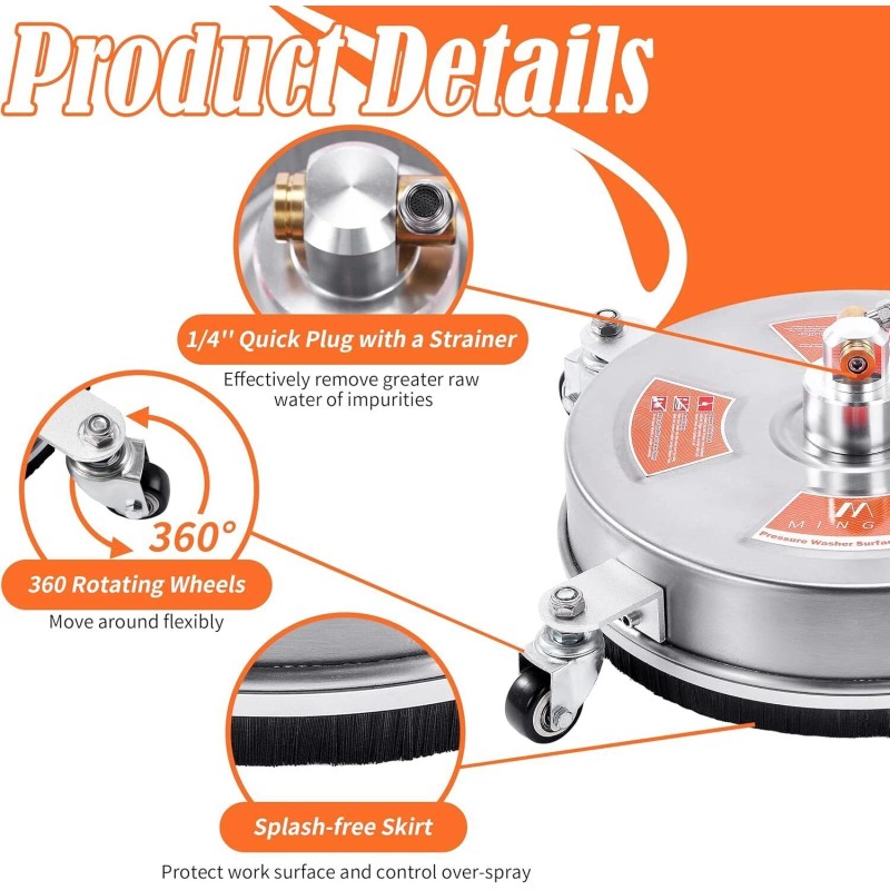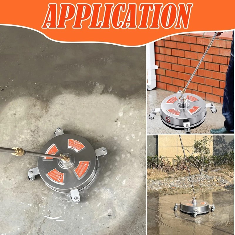 【Wide application】Power Washer Surface Cleaner provides efficient cleaning, saving you a lot of time. Ideal for cleaning stubborn stains on flat and large surfaces such as patios, driveways, decks, sidewalks, etc.
