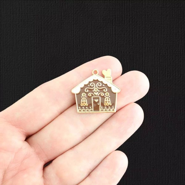 Unbranded 2 Gingerbread House Gold Tone Enamel Charms - E1168