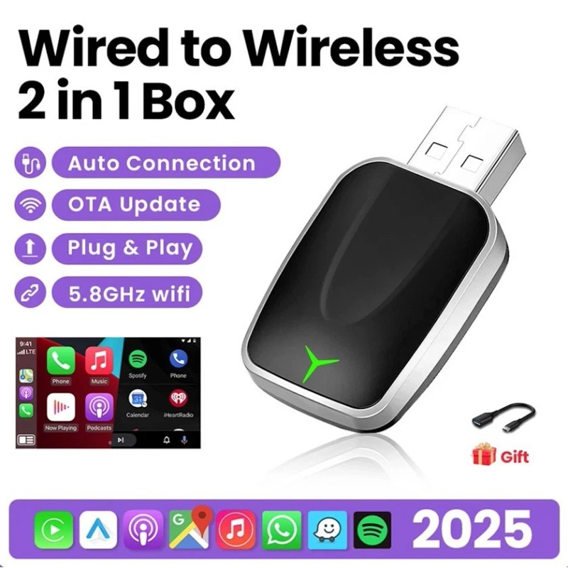 Unbranded 2-in-1 Wired to Wireless CarPlay Adapter / Android Auto Adapter Plug & Play
