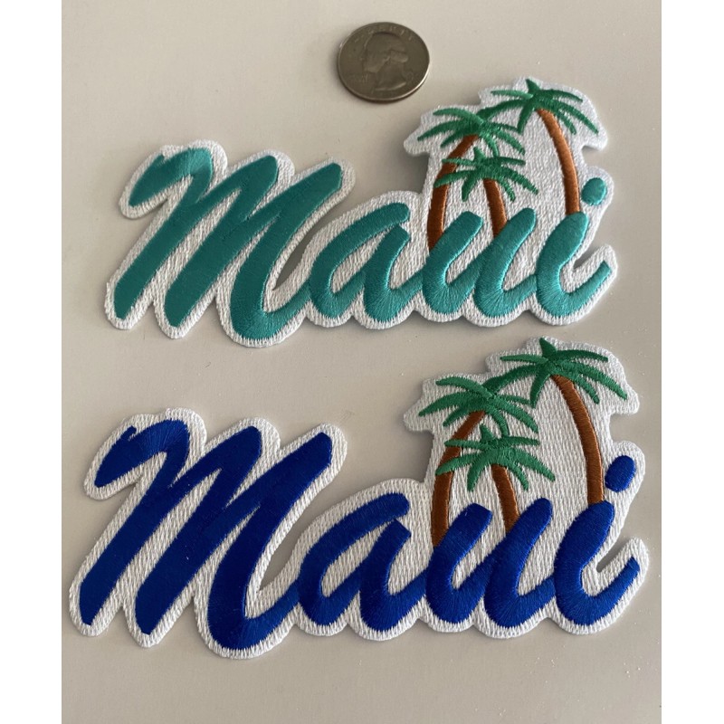 Unbranded (2) “MAUI" Embroidered Iron On Patches 5"x 2". Turquoise & Blue. Beautiful!