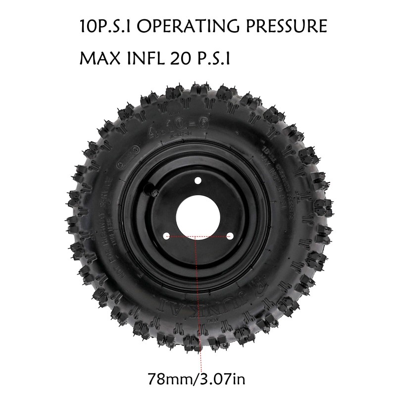 Unbranded 2 Pack Rear Tire Assembly Replacement for Mower ATV Buggy Scooter 4.10-6'' Black