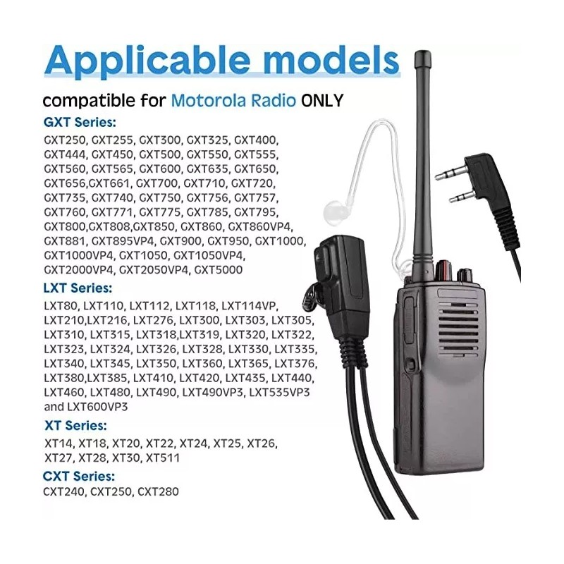 - Compatibility: our walkie talkie headset is only compatible with Motorola radio, compatible with GP/XTN/CLS/Spirit/CT/PRO/RDX series walkie alkies; To see more compatibility information, please search in the description page; Please confirm the model of the walkie talkie before purchasing
