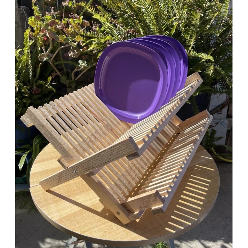 Unbranded 2 Tier Dish Drying Rack Collapsible Dish Drainer, Pine Wood 24 pieces of plates