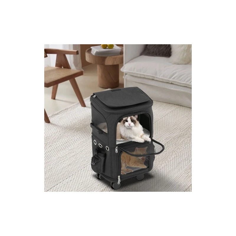 Unbranded 2-Tier Rolling Pet Carrier with Large Capacity for Dogs and Cats