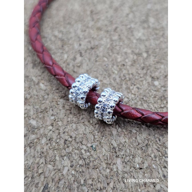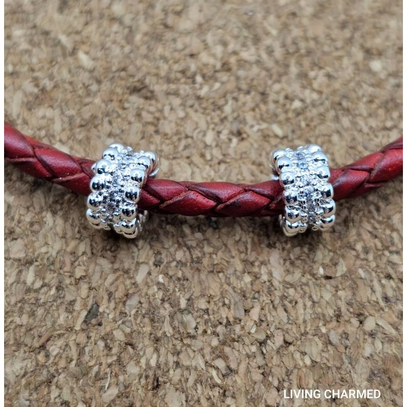 2 X SILVER CZ BUBBLE SPACER CHARM BEADS