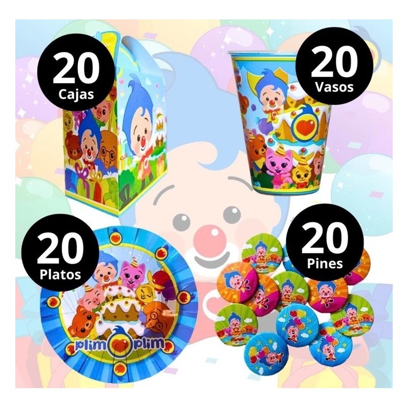 Platos, vasos ,dulceros y pines nuevos y de alta calidad. MATERIAL: Papel/Cartón. El paquete incluye 20piezas de platos, 20 piezas de vasos, 20 dulceros y 20 pines