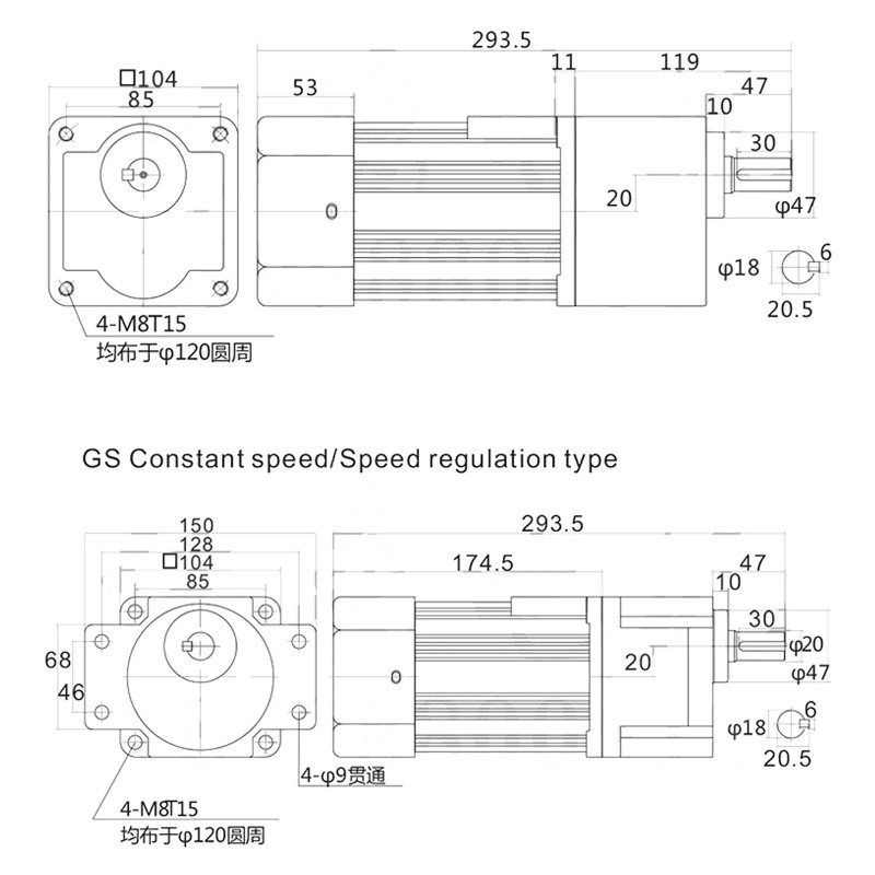 Diagonal Mounting Hole Distance (Reduction Gearbox): 12cm/4.7inch