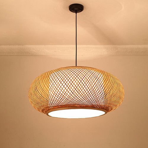 Unbranded 23.5" 40W Retro Bamboo Rattan Wicker Chandelier Ceiling Lantern Pendant Lamp