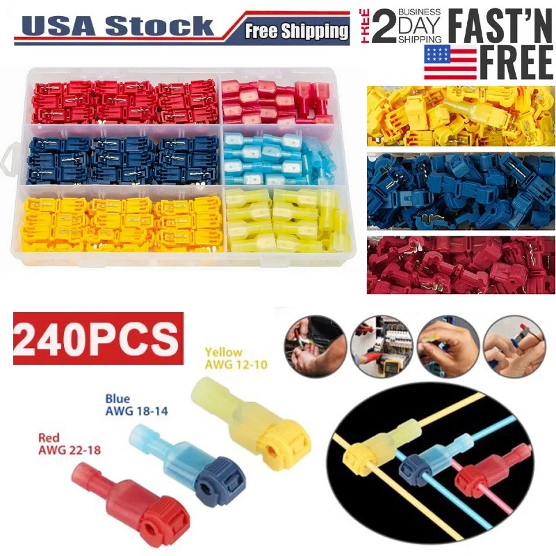 240pcs T-Taps Wire Connectors Quick Splice Terminals Insulated Crimp Cable