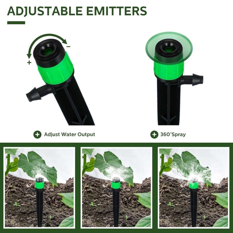 25Pcs Drip Irrigation Emitters 360° Sprayer Adjustable Flow Fits 4mm Tubing