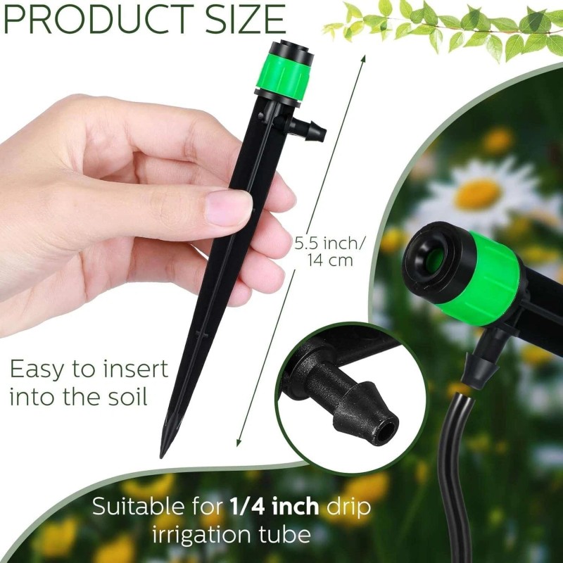 Efficiently water your garden with this 25-pack of 360° drip irrigation emitters. Each sprinkler head features adjustable water flow and is designed to connect easily by hand to 4mm inner diameter tubing—no tools needed. Standing 5.5 inches (14 cm) tall, they’re perfect for vegetable beds, flower pots, greenhouses, and more. Ideal for DIY drip systems and plant care automation.