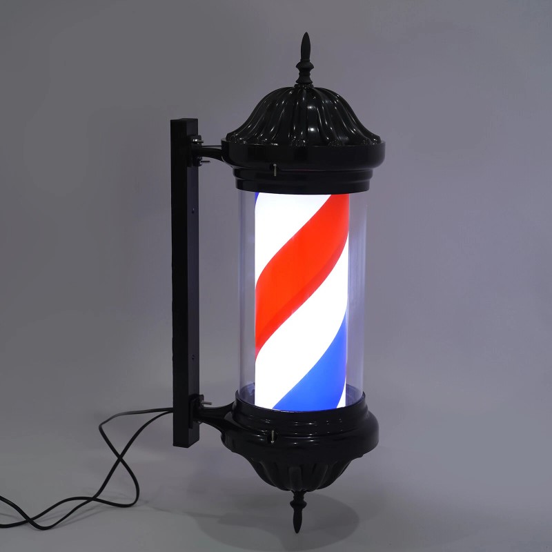 The barber pole is not only an advertising sign but also a unique cultural symbol. This red, white and blue spiral barber pole LED light can not only help your barber shop stand out in the street, but also attract more and more customers!