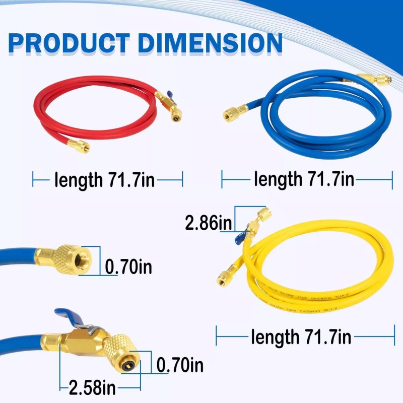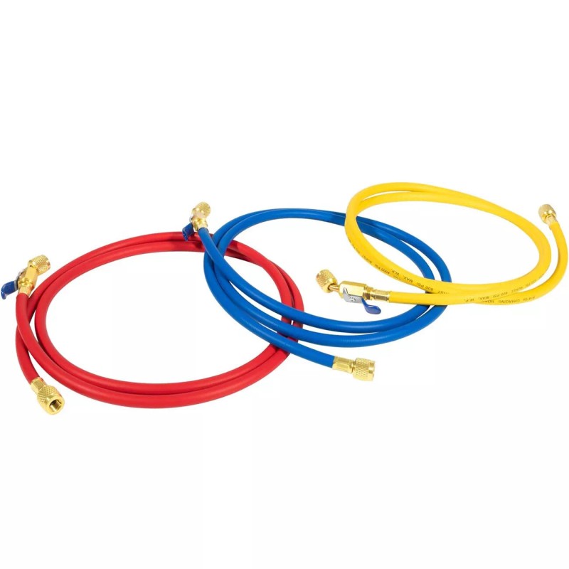 3pcs Includes 1* red hose,1* yellow hose and 1* blue hose.72" Long 3 pack 1/4" Hoses.
