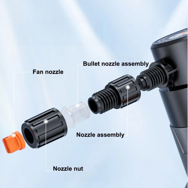 [Automatic foaming system, one button operation]: This electric car wash foam ejector is equipped with an advanced automatic foaming system, which supports the one button spraying function. The automatic spraying of foam can be realized by simply pressing the button to ensure uniform and thorough cleaning effect. The equipment can provide a fully covered foam layer for vehicles to effectively remove stubborn stains.