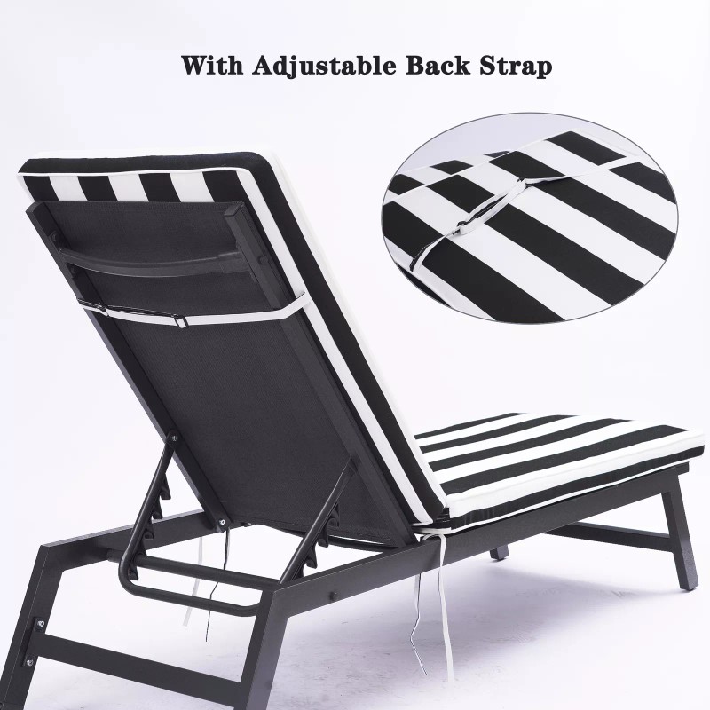 Practical Design: An adjustable strap is designed at the back of the cushion cover, which greatly increases the adaptability of various types of chaise lounges.The seat cushion is also provided with straps, hold the seat in place