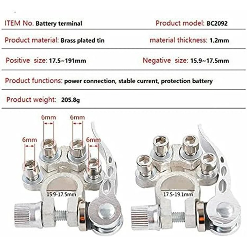 2PCS 4 Way Car Battery Terminal Clamp Connectors Quick Release Disconnect Tool