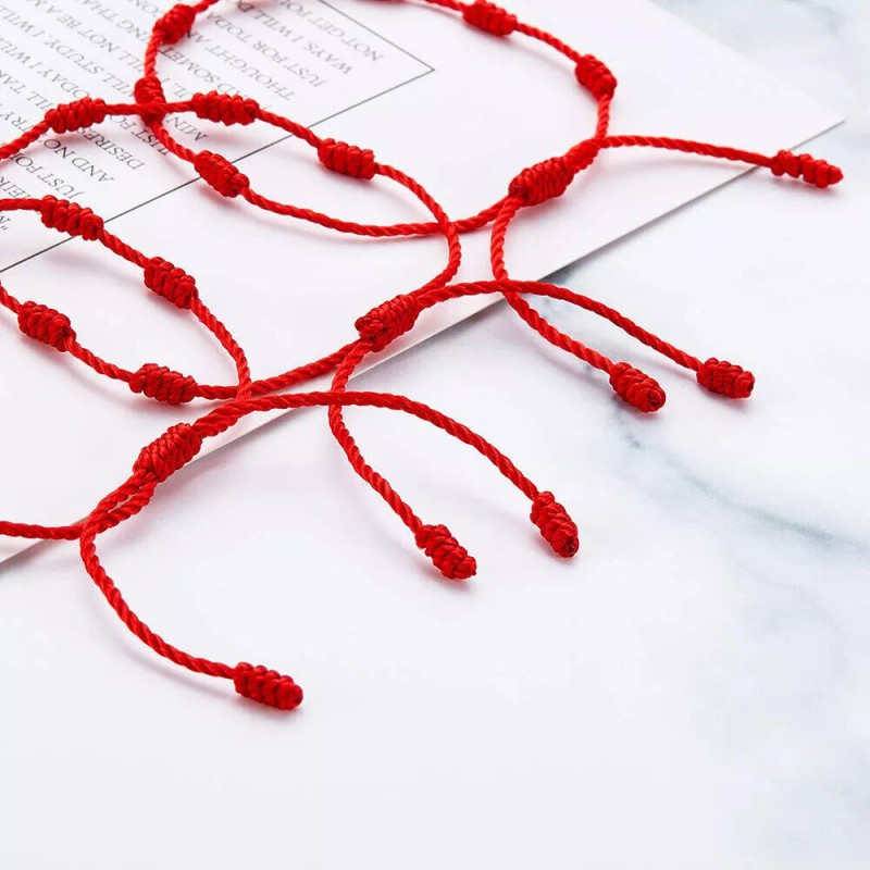 Unbranded 2pcs Lucky Red String Bracelet Kabbalah Amulet 7 Knots Protection Rope