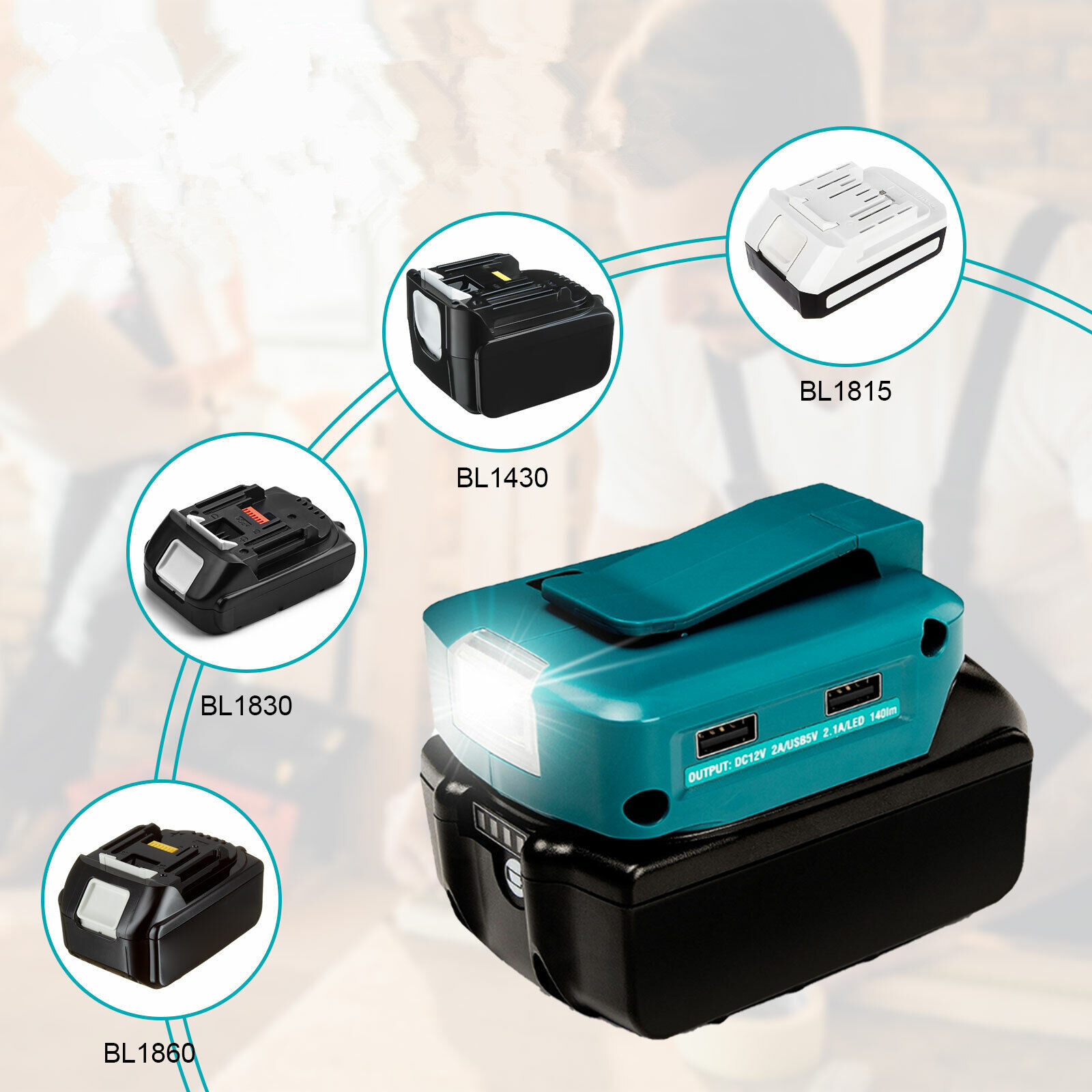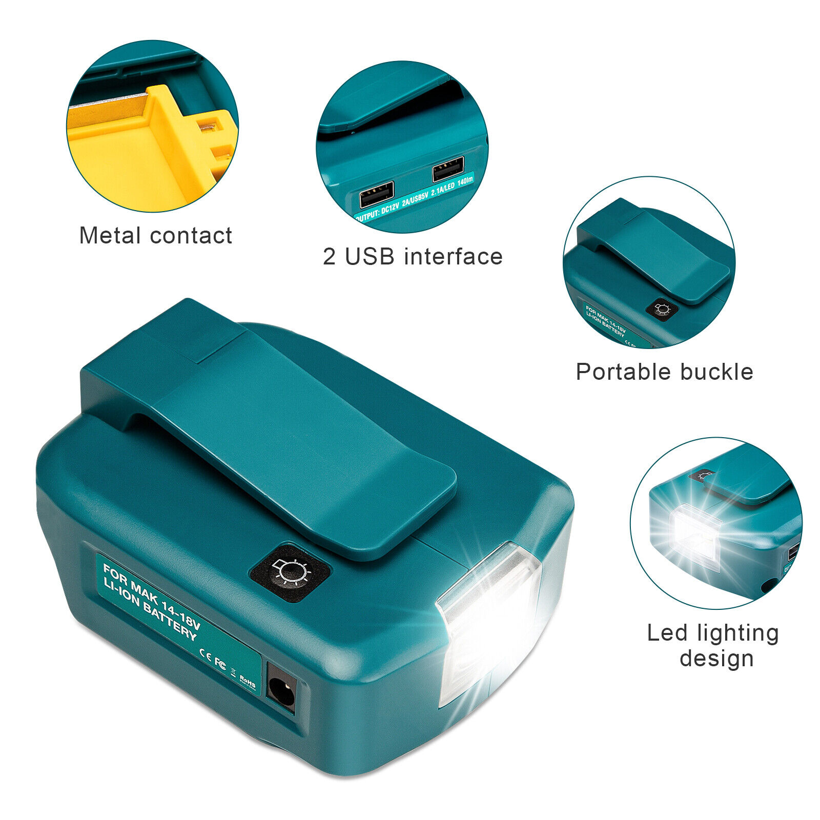 2USB Power Source Battery Adapter For Makita 14.4V-18V Li-ion Battery with LED I