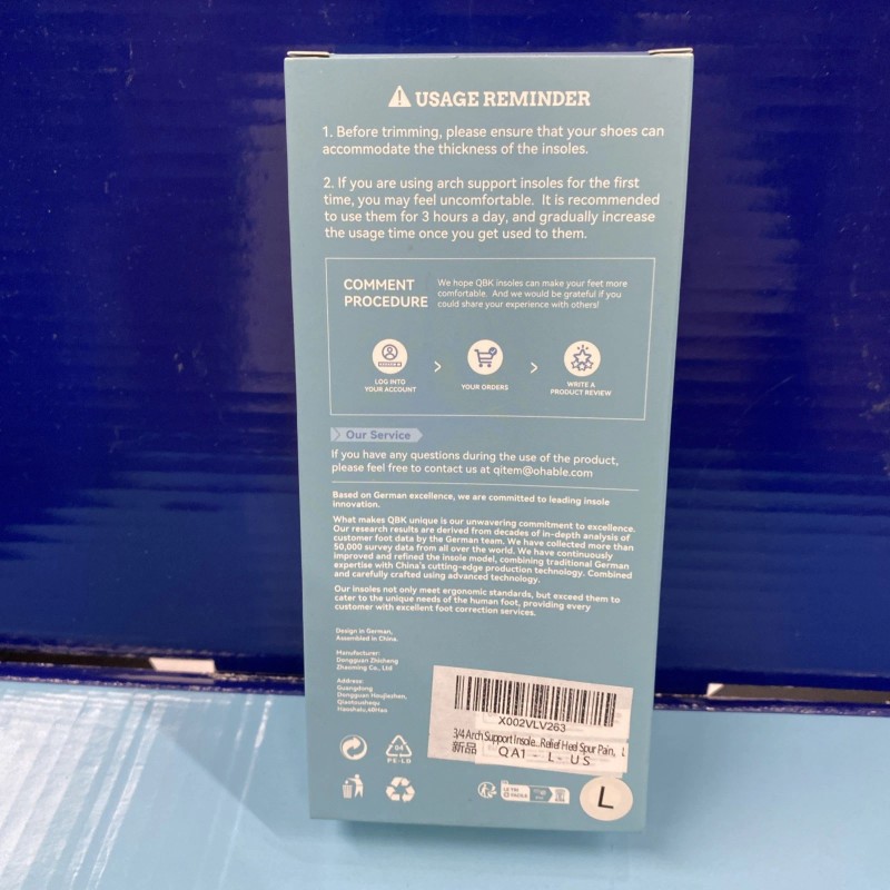 3/4 Arch Support Insoles High Arch for Women/Men,QBK Orthotics Shoe -L