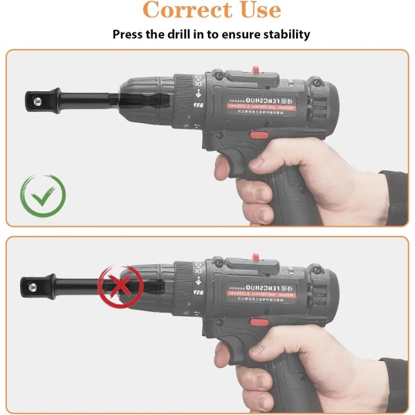 - 【Size】:The size of the square tip is about 10 mm/ 3/8 inch, and the size of the hexagonal handle is about 6.3 mm/ 1/4 inch. Each square head of the 3/8 socket adapter has a spring ball bearing part, which can effectively fix the socket and avoid sliding.