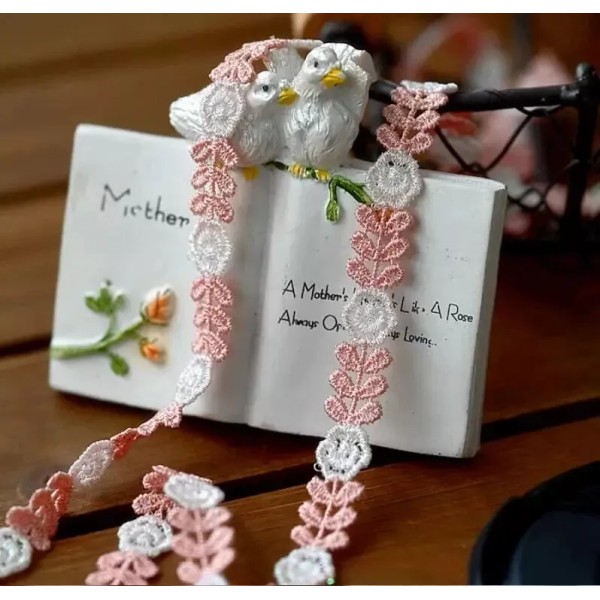 Add a touch of elegance to your sewing projects with this beautiful pink and white trim. Perfect for adding a feminine touch to clothing, upholstery, and more. The trim is made from high-quality polyester and measures 3/8 inch wide. This item is sold by the yard and is perfect for those who want to add a unique touch to their sewing projects. The flower shape adds a charming touch to the trim, making it an ideal choice for weddings, blankets, saris, and headbands. Get your hands on this beautiful trim today and give your sewing projects the upgrade they deserve!