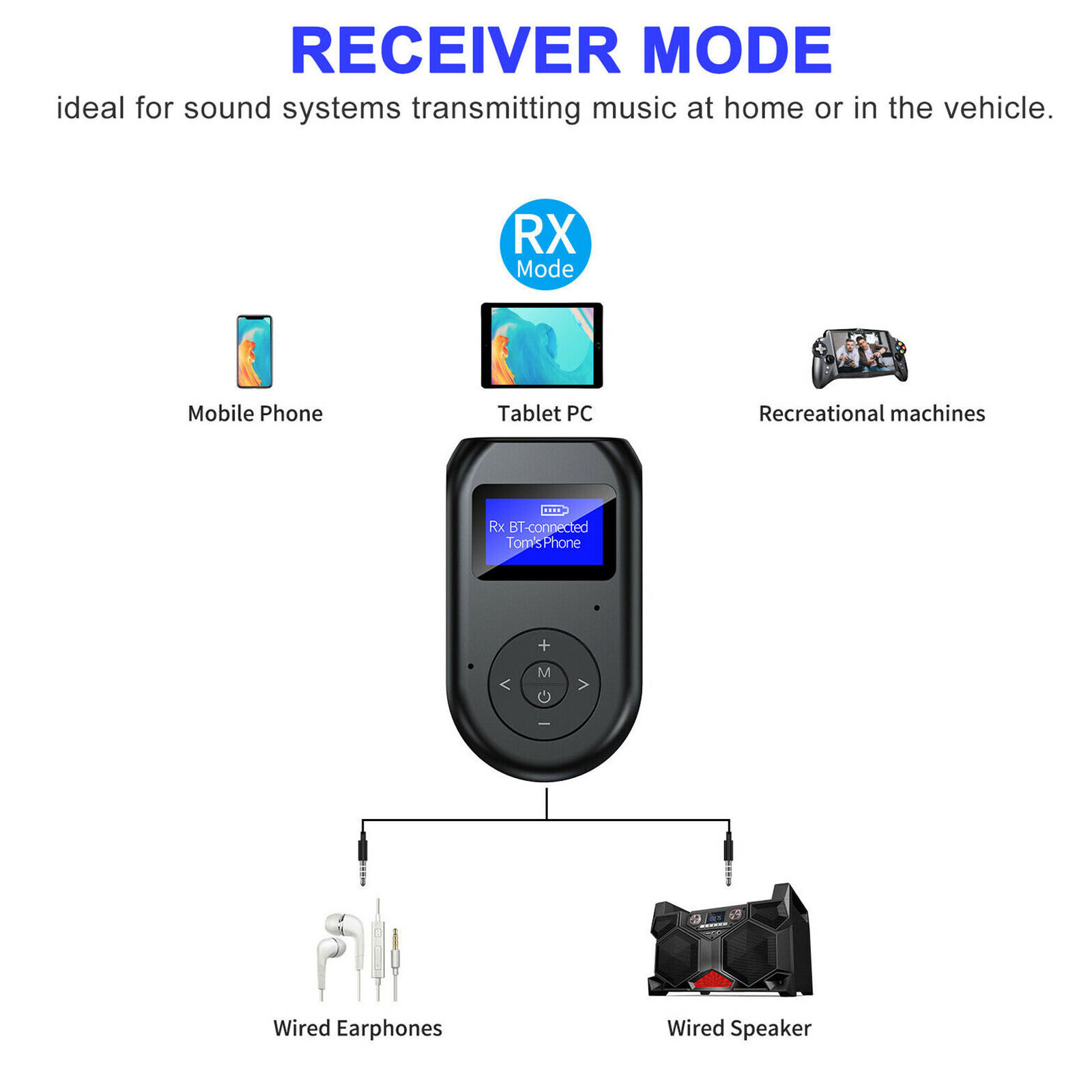 Receiver mode: ideal for sound systems transmitting music at home or in the vehicle. watching late-night TV shows, or simply when you want to keep the entertainment for yourself only.