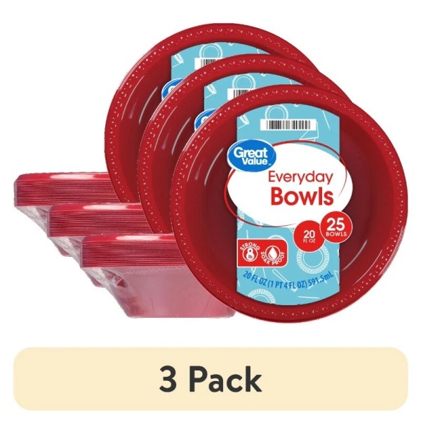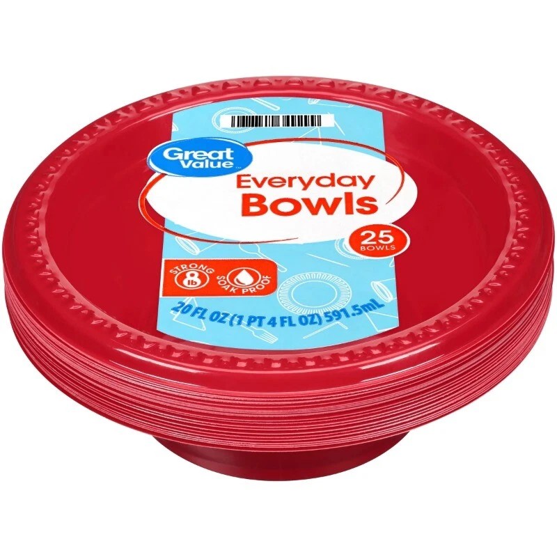 - Great Value Everyday Disposable Plastic Bowls, Red, 20 oz, 25 Count
