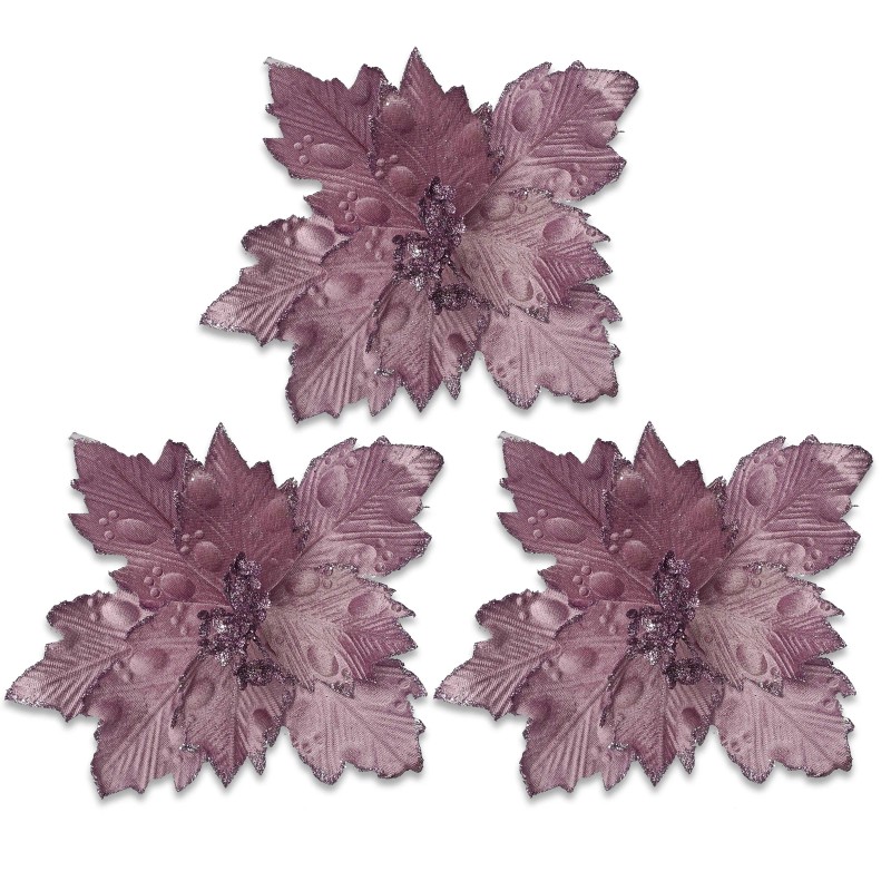 3 Pack of Lavender Poinsettia Picks with Glitter Centers